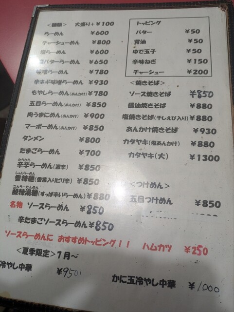 ラーメンも気になりましたが、今回はソースラーメン大盛りと餃子5個を注文。