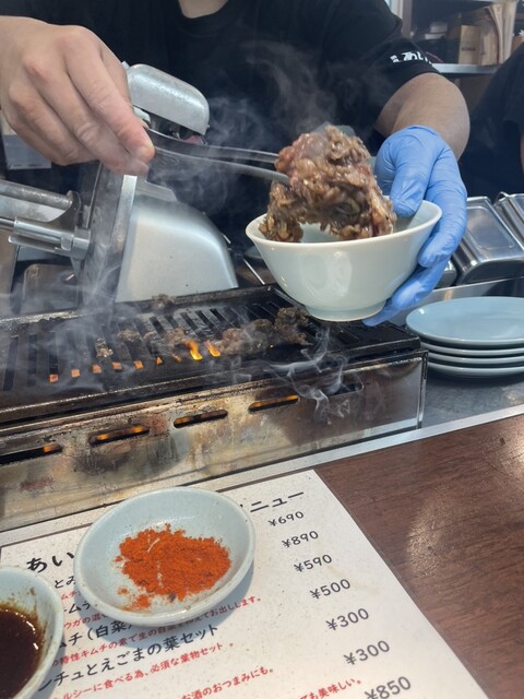 初訪問。夏のキムチ(茄子とミョウガ)、オススメのアツタン、上ハラミ、上カルビ、ココロ(美味!)、塩ホルモン、飲むサーロイン、冷麺。