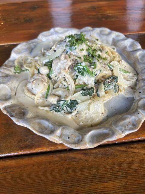 注文したのがpizzaはモッツァレラとトマトのピッツァ、パスタは朝摘みほうれん草とホタテのクリーム(^^)