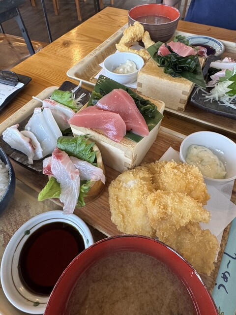 刺身5点盛りとシーラのフライ、最高に美味い!