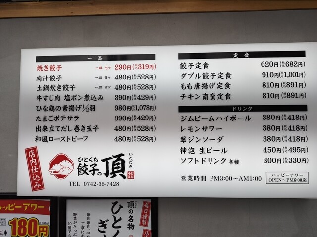 ヨシックス系列のお店です。近鉄新大宮駅改札でて向かい。餃子がメインです。パッピーアワー(6時まで)なら198円です。一口餃子なので何個も食べられます。にんにくは入っておらず、テーブルにおいてある自家製にんにくを入れ放題です。