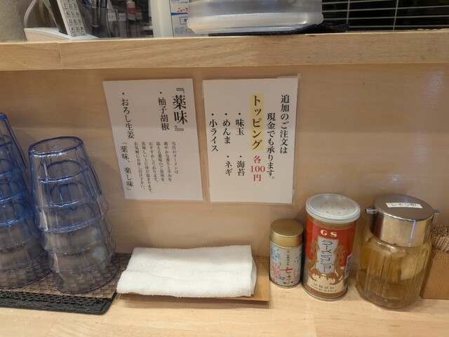 ドックが終わった後、少し時間を潰し、混む前のオープン15分前に到着したものの、誰もおらず、結局ギリギリに2人来たくらいだったので、少し早すぎました(;^ω^)でも、ラーメン屋で一番乗りは初めてかも(^o^)