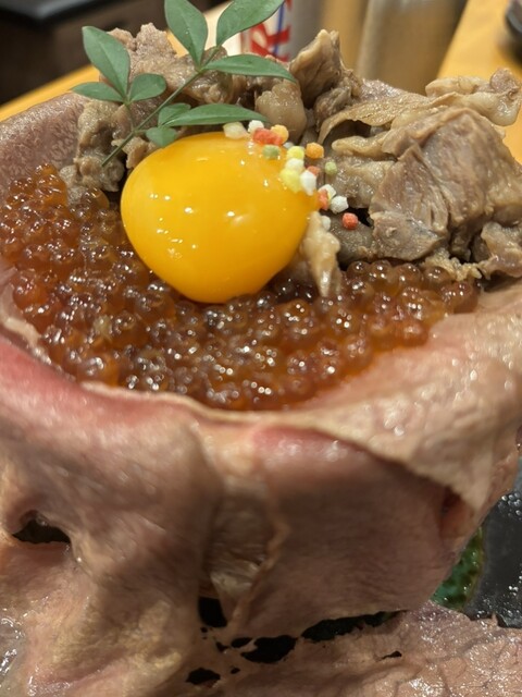 運ばれてきた瞬間、肉の迫力と肉の上にのっているイクラや牛肉などに一気に期待が高まりました!!