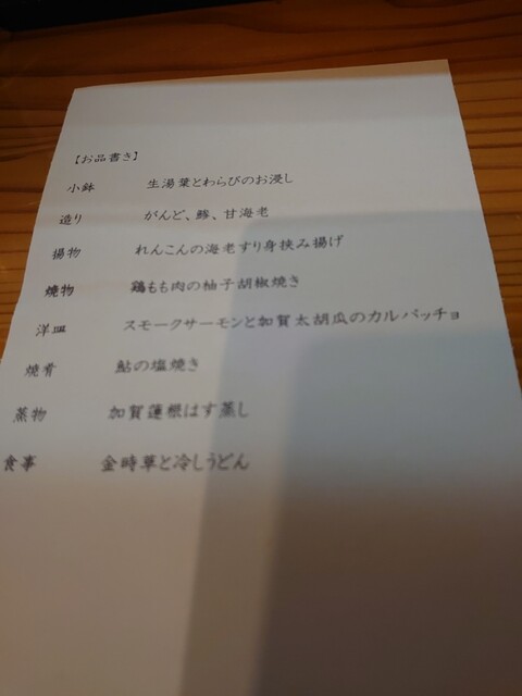 加賀れんこんが食べられるお店を見つけて行って来ました。季節のコース税込3300円