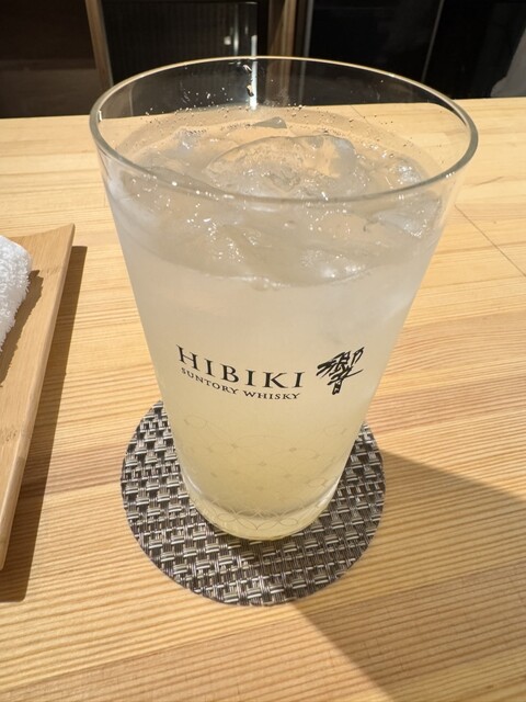 涼しい店内に着いたら、おしぼり貰って桃のリキュールの炭酸割りでクールダウン。