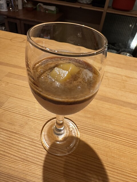 今回はメニューにないけど桃のお酒があるって事で、ゲリラ豪雨にやられていたのでソーダ割りでグイッと頂きました。ツブツブ感が爽やかで良いです。