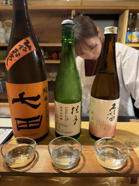 次は普段あまり日本酒は飲まないのですが、こちらでは飲み比べを頼んでしまいます。