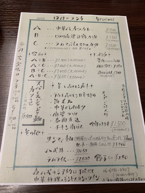 これほど迷ったのは久しぶりです。この間、食べ損ねた麻婆豆腐を食べるか?!カツカレーも捨てがたい、でもこの店はジンギスカンがおすすめと聞いている、、、長考の末、羊のホルモンプレートにしました。後ろの人が頼んでいるのが、運ばれてきているのを見て決めました。メラビアンの法則ですなー。