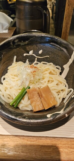 モツつけ麺の中毒になってしまったのか、無性に食べたくなり訪問。モツつけ麺とスープダイブ用のライス小の食券を店前で買い入店。麺とスープの相性が抜群で一気に食べほしました。美味しかった。ご馳走さまでした。