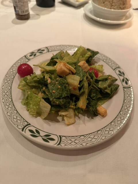 肉厚ローストビーフと付け合せの塩とライムで味付けしている春菊バクダンとっても美味しいです
