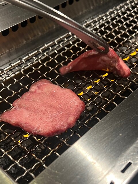 一般的に、接客マナーとしてはドリンクは右出しお料理は左出しということがありますが、カウンターで正面に2名で1つの焼き台があるため、焼いているお肉が食べやすいように右側の席は基本的に右側から提供、左側の席は基本的に左側から提供するようにしていらっしゃるようで、それに驚き、また友人との間から提供がある場合は”間から失礼します”など、様々な提供時のその一声一声のお声がけが丁寧にあり声色も落ち着いていてしっかりしているお店だなと感じた。