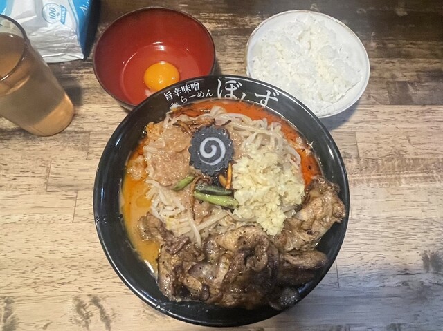 旨辛味噌らーめん(中)1030円ライス100円生玉子80円