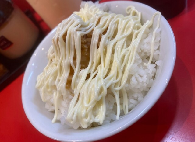 他店舗と比較してもチャーシューのプリプリ具合がいつ訪れても完璧と言う、チャーシュー好きにはたまらないのがこの五代目。程よく弾力のある肉を噛みちぎり、マヨネーズを大量にかけたライスをかっこめば口の中が天国、お手軽に逝ける。