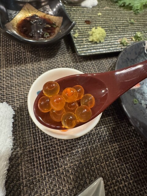 刺身は全体的にハイレベル。姫鮑はまだ動いているほど新鮮でコリコリ食感が最高。アオリイカはねっとり甘く、いくらは粒が大きく味付け抜群。ゴマ鯖は濃厚な胡麻だれがしっかり絡み、鰆の藁焼きは香りが立って食欲をそそります。マグロの握りも握り加減が絶妙。