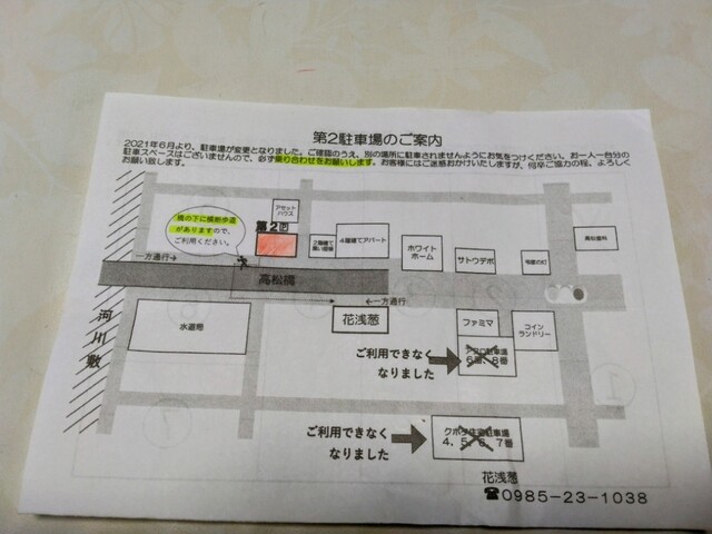 乗り合わせ1台なら、1,5,6,7番 グループ数台なら2,3,4番だそうです。まあまあ広く駐めやすく、出やすいです。店へは橋方向にぐるっと回り横断歩道を使うと安心安全とのこと。