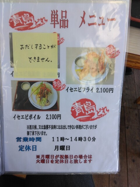 窓側に座ると青島漁港と青島が見える。青島はやっぱり県では観光地としては、私は自慢のメダリスト級。なのでWメダリスト店かな。
