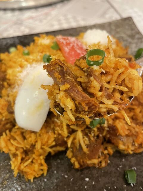 シーカバブはジューシーな鶏肉の串焼きで香ばしいスパイスが効いています。マトンカレーは羊肉とジャガイモがたっぷりで量も多くてお腹いっぱい! スパイスのバランスが絶妙で本格派。辛さも自分好みに調整できました。