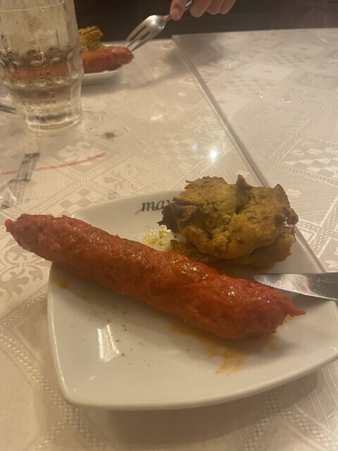 メニューは本格的なインドカレーなどが豊富。私はシーカバブとマトンカレーにラッシーを注文しました。