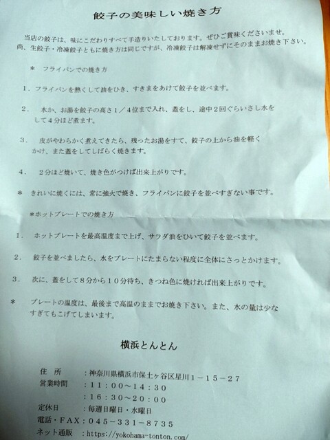 レビューしてて美味しそうなので 百名店で満点を付けてる「横浜 とんとん」さんの餃子をテイクアウトしてみました