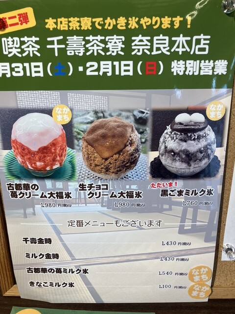 1/31土・2/1日の本店特別営業の“かき氷”。