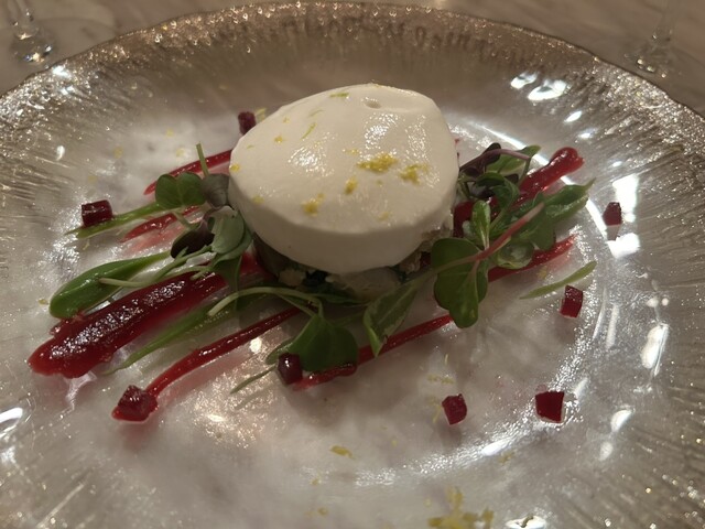今回はフルコースを予約したのですが、どの料理も盛り付けが綺麗で、非常に美味しくかったです。また、かなりボリュームもあり満足感が得られるコースかと思います。前菜や魚料理とワインの相性も良く、1人でワインを4杯も頂いてしまいました、、笑