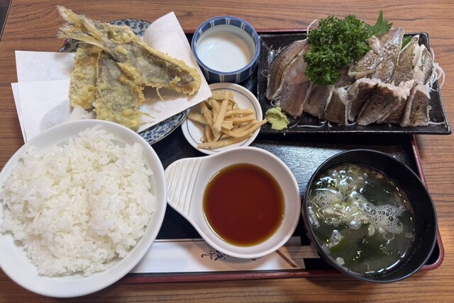 青身魚の刺身定食(生さんま、あじ)&持ち帰り のどぐろの定食(刺身、天ぷら)
