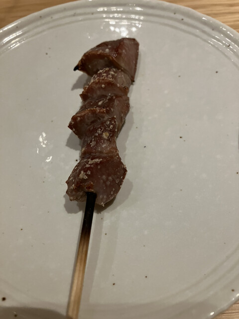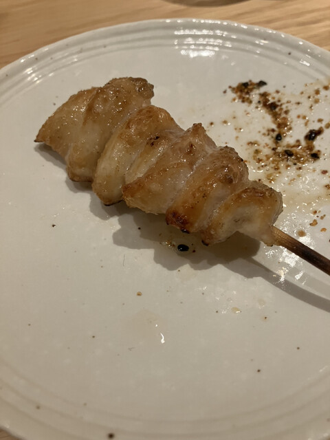 休日の夜に伺ったところ待つことなく入店できました。串6本のセットを注文したところ、塩で砂肝、ヤゲン軟骨、ぼんぼち、たれでヒレ、レバー、つくねをいただきました。どれも美味しかったですし、サラダやお茶漬けを取り分けて提供いただき嬉しかったです。