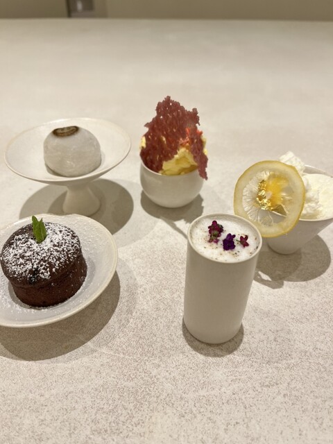 お腹いっぱいすぎてメインくらいから白目剥いていましたが、デザートも小さいのがたくさんで目がハート♡