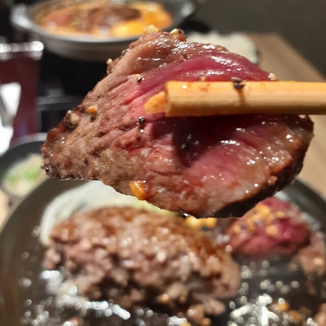 シャトーブリアンを表現した、柔らかく、美味しいとろけるハンバーグ❗サイズは、S.M.L.LLとあり、私は、Lサイズの「とろけるハンバーグと熟成ハラミステーキのコンボ」税込3061円をいただきました❗ボリュームあり、肉の旨みがとろける美味しさ‼️和牛を使用し、つなぎを一切使わない牛100%‼️