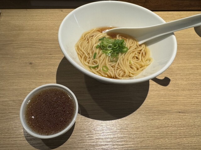 煮干そばの食券を買ってプラス百円玉を店員さんに渡し、程なくして着丼