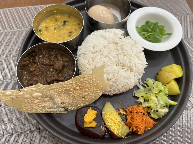パパドやゆで卵やさまざまな副菜がついて1100円はお得な感じです。