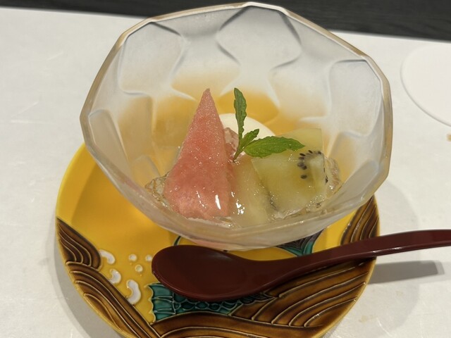 お料理はどれも上品で美味しく、また出てくるタイミングもテンポ良く心地よく過ごせて快適でした。日本料理では珍しく牛肉を使った品が多かったのが印象的でした。写真のお料理の他ハモのお椀もありました。