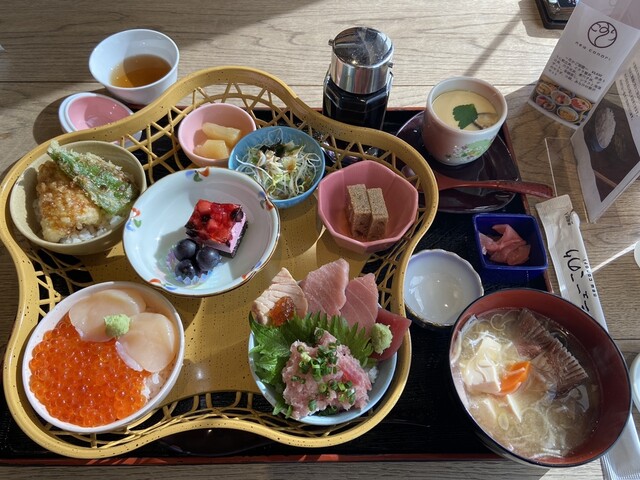 1年半ぶりで、またまた女川にきて同じく姫花かご膳2640円をいただきました。今回は大きなエビのお刺身付きです。変わらず美味しかったです。