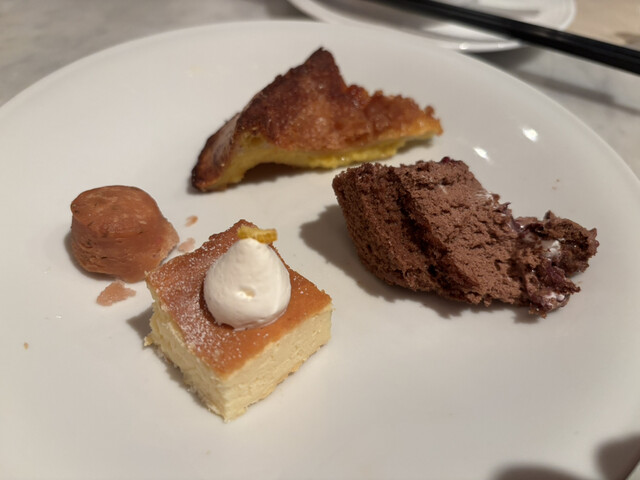 メニューが工夫されているというか、初めて食べるようなお料理もいくつかありました。パンがメインかと思っていましたが野菜はビーツやスナップエンドウもあるし、豚肉のローストや鯛のカルパッチョまであります。飲み物もハーブティーがまわってきたり、4000円というお値段を考えると素晴らしいビュッフェだと思いました。人気があるのもうなづけます。