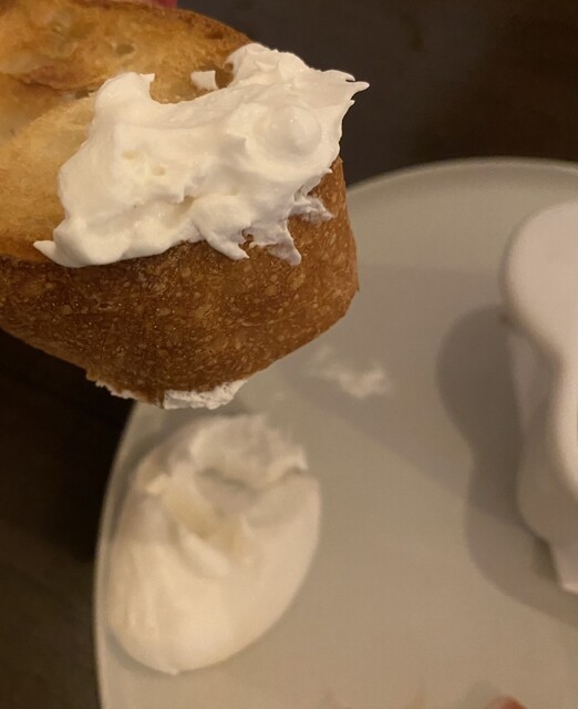 焼きたてのバケットにつけて食べてみるとクリーミーなのにさっぱりしてるー美味しい、いくらでも食べられる危険な塩ホイップ&バケット。