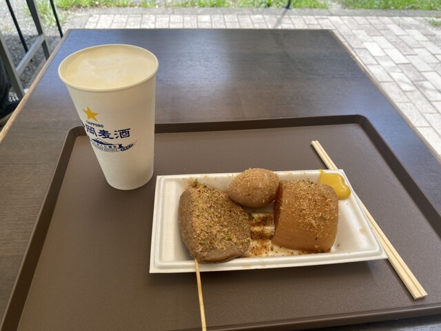 この暑い中でもおでん?と思ったけど外のイートインスペース見たらココで飲むビール&おでんはは最高だろうな〜