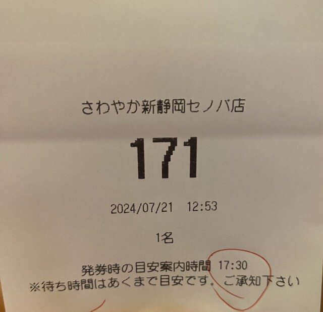 発券時、呼び出し4時間半後でした!