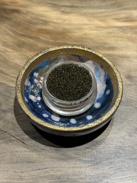 続いていつものキャビアと毛蟹ですが、キャビアが若いものということで、いつもよりだいぶ青かったです。