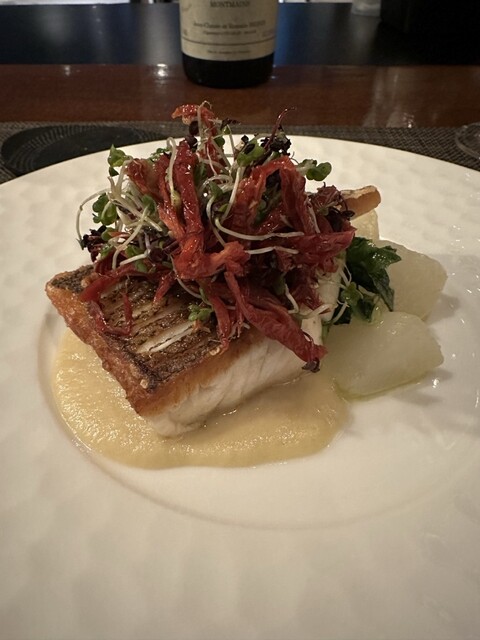 これは文句なしで美味しい。海老の旨みがすこぶる濃厚で、いつまでも味わっていたい。今まで食べた海老のビスクで一番のお気に入りです。シェフ曰く、一人一尾使っているそう。