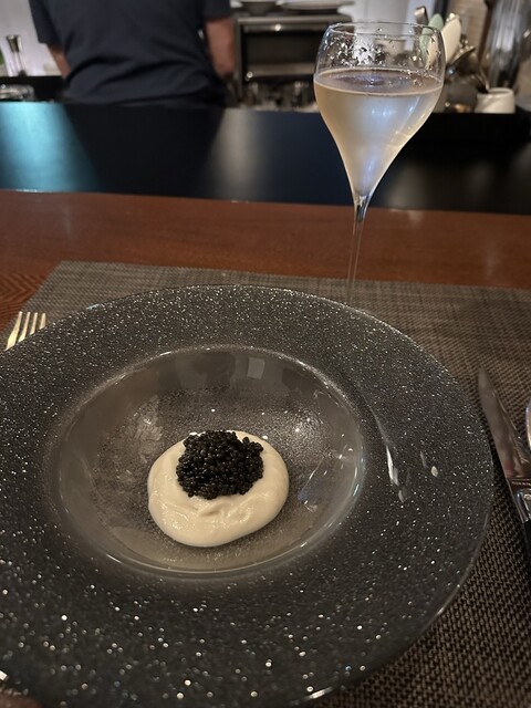 一皿目でいきなりの衝撃。何かの間違いか?と思うようなキャビアの量です。ムースの甘みとキャビアの塩気がとても美味しい。シャンパーニュととても良く合います。