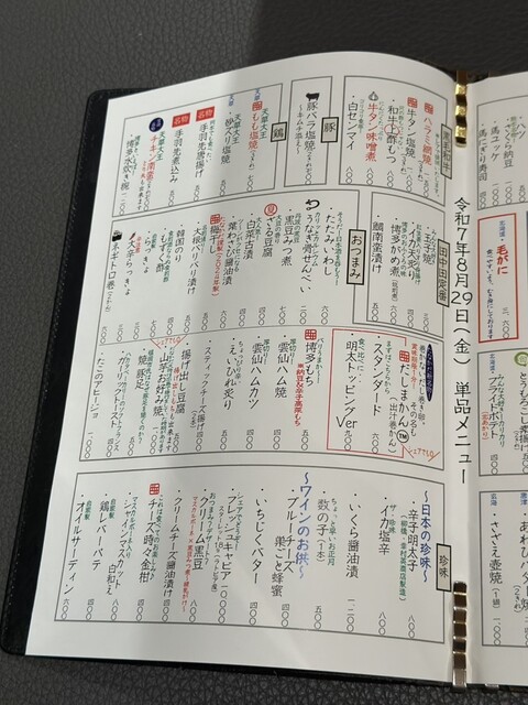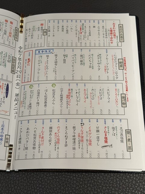メニューは価格表記が明確となり、田中田の味はそのままに、日本酒と日本ワインを中心とした小皿料理の店へと変化を遂げています。