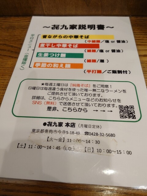 さて、昔ながらの中華そば(ラーメン)をと思いましたが、土曜は限定そば!