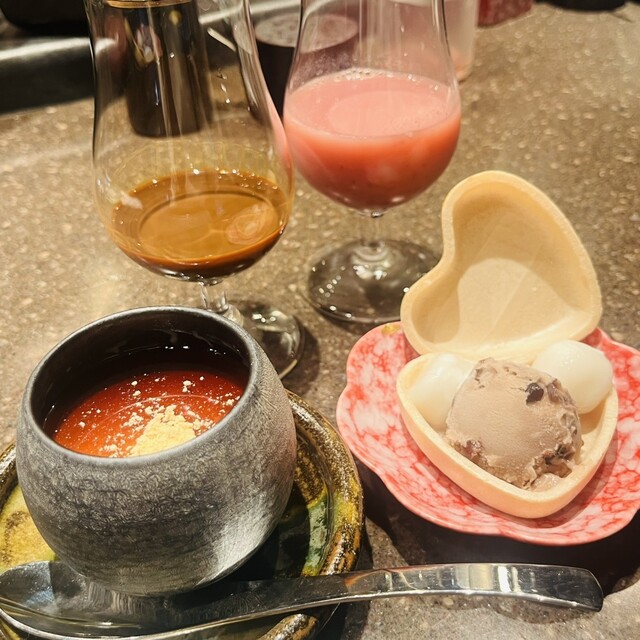 小倉アイスと白玉のもなか・自家製プリン黒蜜きな粉