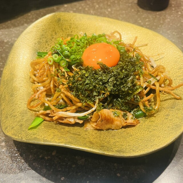 大分県日田市の名物日田焼きそば!3分の1の麺は油でカリカリに揚げたあげ麺、3分の2は鉄板で香ばしく焼かれた焼き麺が特徴で、バリバリ麺の食感がなんとも言えないくらい最高でした!この上なく味が濃くて大好きな味でした。新鮮な卵黄を割って食べるとマイルドに食べられます。