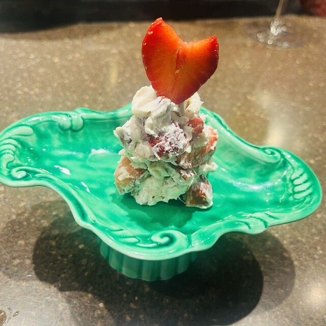 あまおうを贅沢に使用し、デザート感覚で楽しめる1品!マスカルポーネの中には、ピーカンナッツ・アーモンド・カシューナッツを刻んだものが入ってていちごの甘さとナッツの食感がとても美味しかったです♪