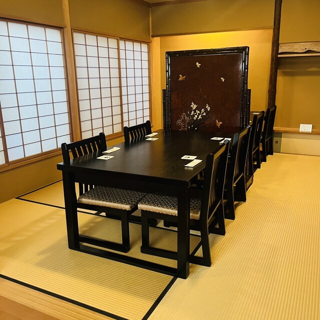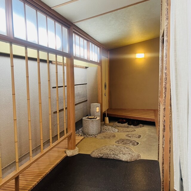 暖簾をくぐり店内へ入ると、木を使用した温かみを感じるカウンター席・奥にはテーブル席があります。現在、盆栽アーティストとコラボレーションされているので、カウンター席前に北海道から沖縄までの各県の盆栽が置かれています。また、毎週入れ替わるので何度きても違う盆栽と巡り会えるそうです♪
