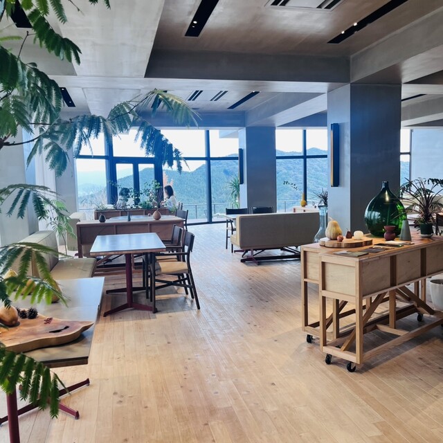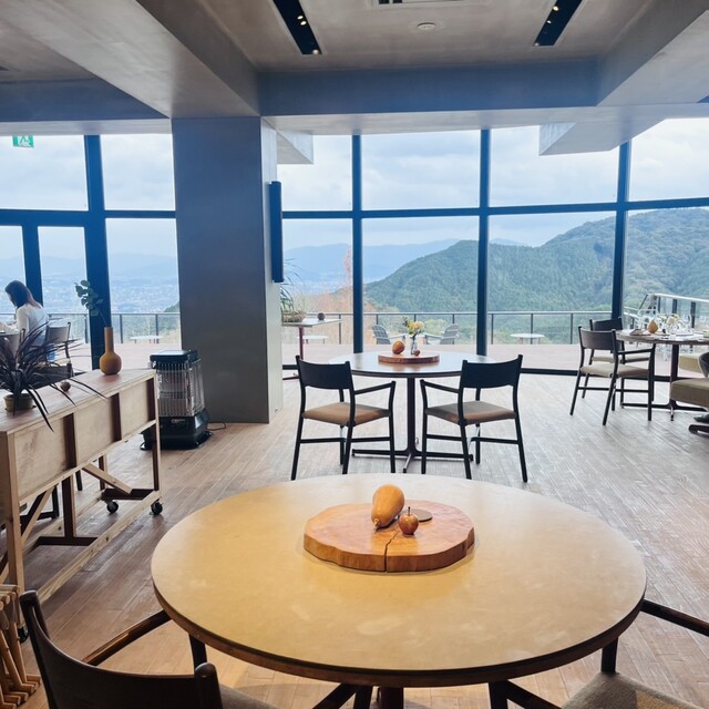 店内は、大きなガラス張りの窓から差し込む太陽の日差し、緑あふれる山、下に広がる福岡の街が一望できる開放感溢れる雰囲気でした。油山という特別なロケーションでしか味わえない食体験を体験してみてください!