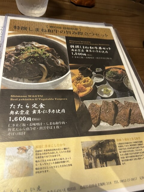 お肉はもう品切れでたたら定食と和牛丼はないとの事