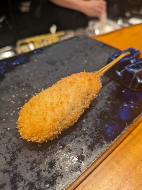 霧島三元豚の串揚げはしっかりとした食感と旨みを持ち、食べ応え抜群でした。豚肉の柔らかい美味しさが存分に引き出されており、カラシソースとの相性も良かったです。