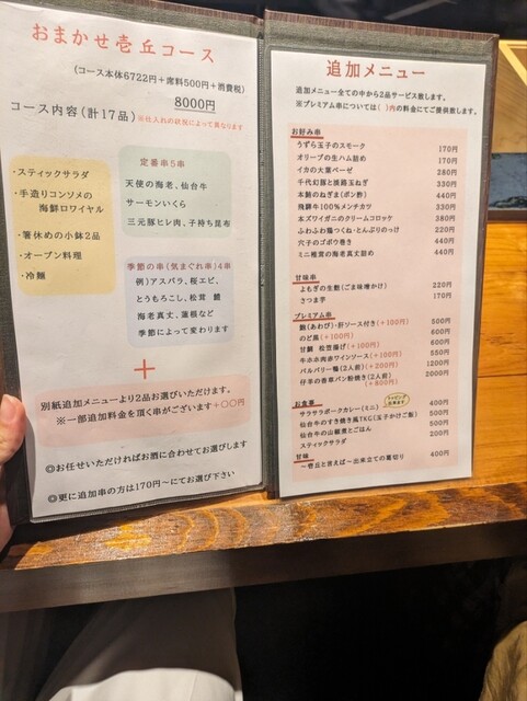 壱丘のコース料理は、それぞれの料理が繊細な技術と素材の良さを活かしており、一つ一つが丁寧に作られていることが伝わりました。また、盛り付けや彩りも美しく、見た目からも食欲をそそられる内容でした。